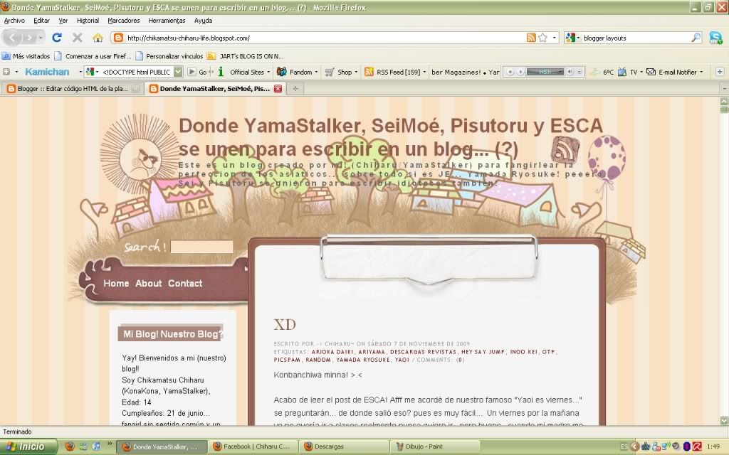 Como pueden observar tenemos una nueva plantilla/layout/skin.... hacer ese cambio fué un completo dolor de culo xD desastre .___. seehh... como lo leen... primero yo quería cambiar el layout... después ni a Sei ni a Pisutoru les gustaba yo que yo elegía =__= después todos querían que ESCA se conectara y que eligiera ella...
